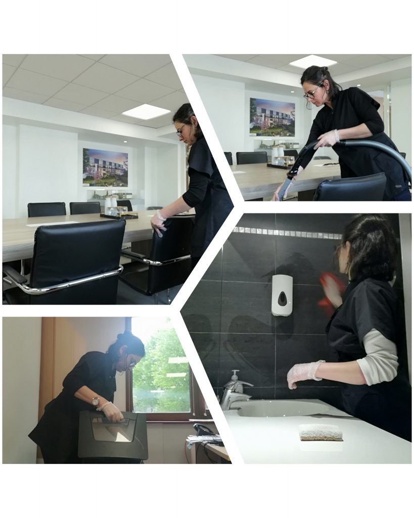 - Nettoyage quotidien ou périodique des sols, surfaces, postes de travail, salles de réunion, etc.